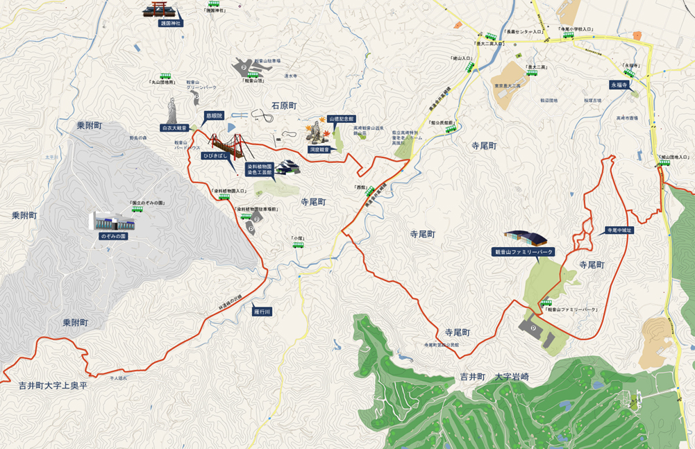 高崎自然歩道 高崎自然歩道とは高崎観音山の中で、自然歩道として指定されている約21Kmをそう呼んでいる。 自然の中を散策することができる。 万葉集の和歌を刻んだ石碑が26建っている山名八幡宮から金井沢の碑の間約5Kmを特に石碑の路と呼んでいる。 自然を満喫できる最高のハイキングコースです。 ぜひ一度来てみて下さい。
